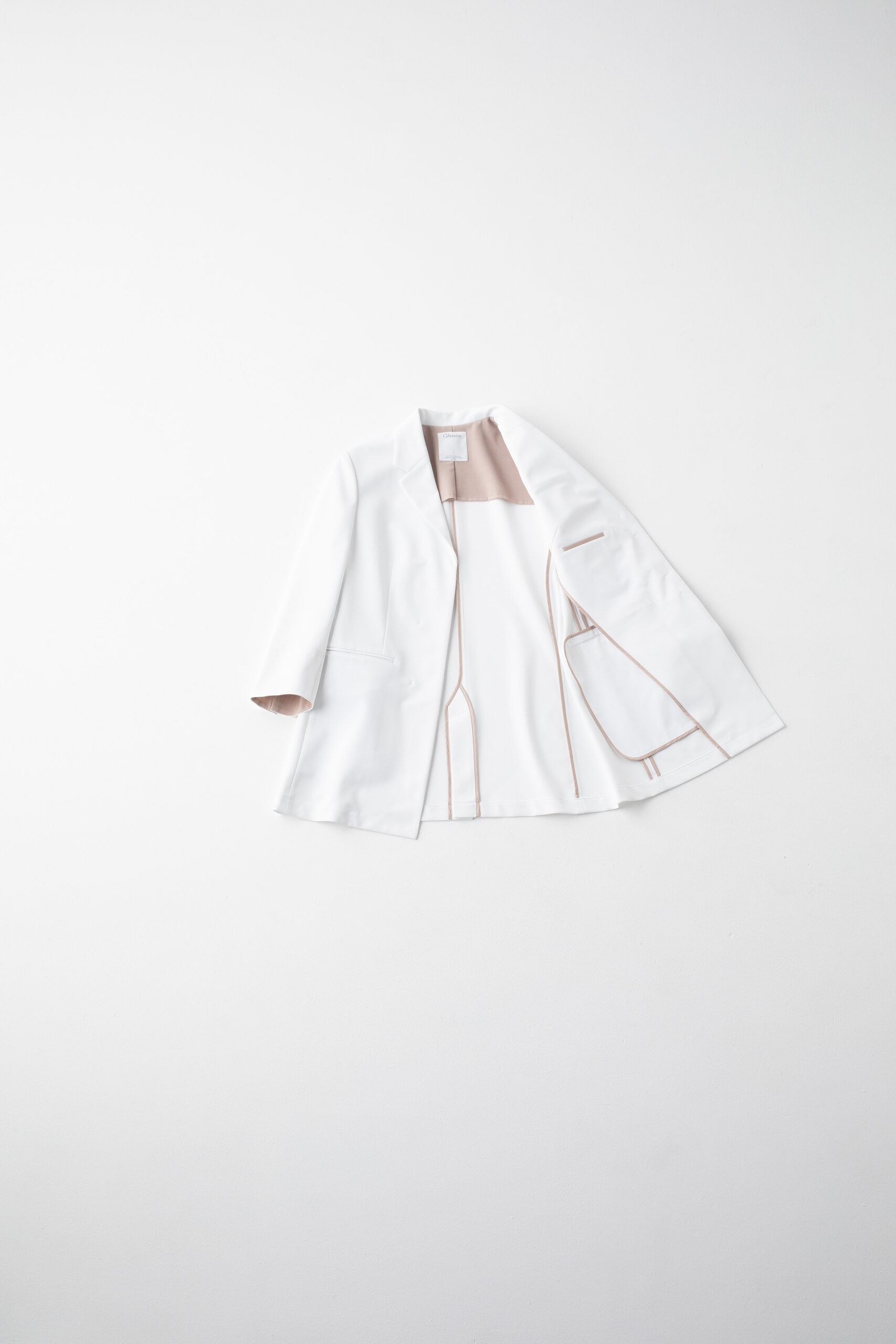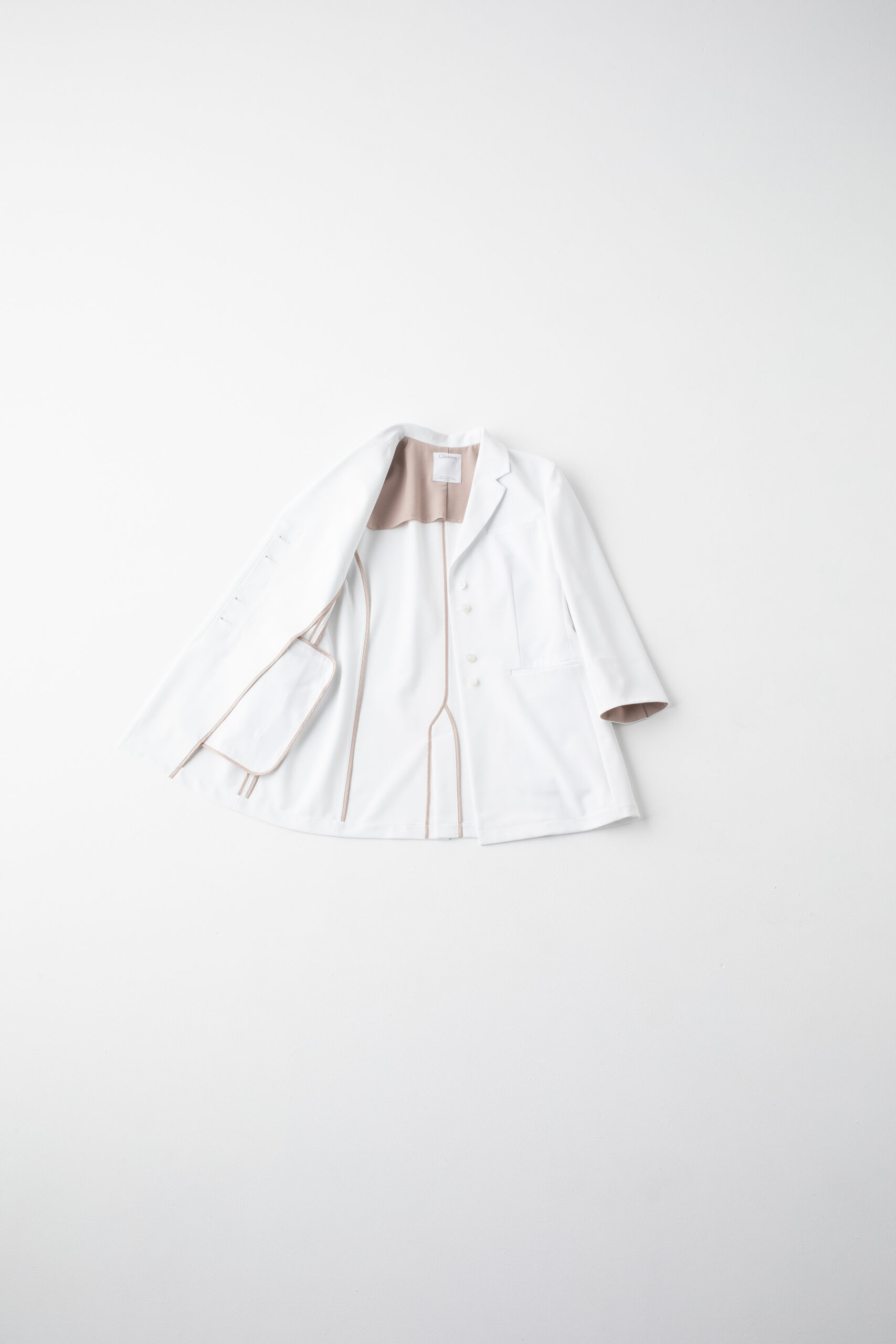 ซับในด้านหลัง ปลายแขน และขอบด้านใน ตกแต่งด้วยผ้าสีชมพูเบจที่แตกต่าง เนื้อสัมผัสหรูหรา เพิ่มความสง่างาม