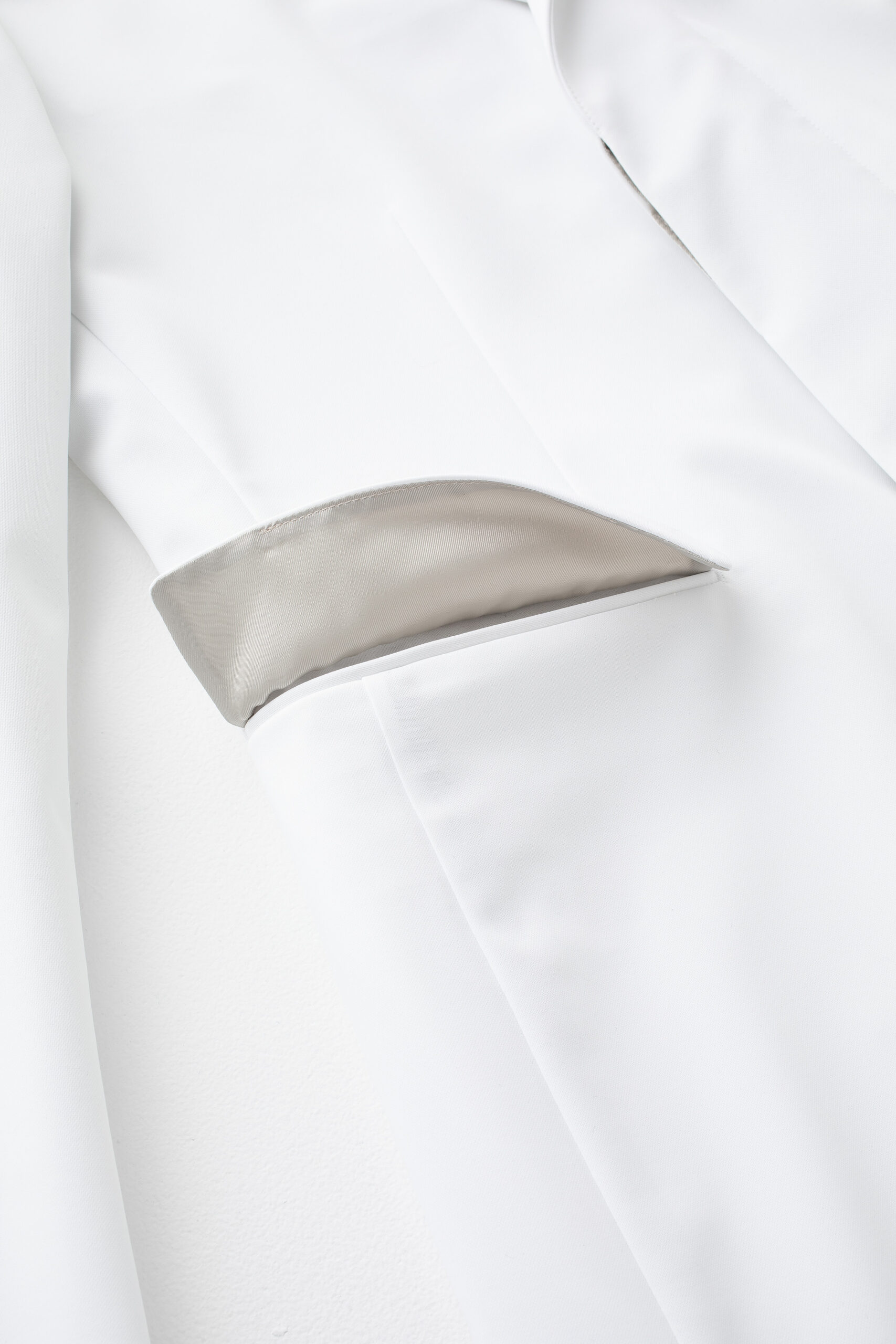 - ชายเสื้อทรงเหลี่ยมเรียบร้อย พร้อมปกเสื้อกว้างสไตล์สุภาพบุรุษแบบอังกฤษ